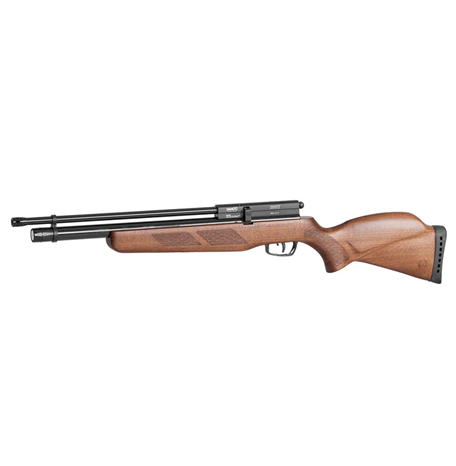 Gamo, grazie alla collaborazione con BSA di Birmingham – azienda del gruppo – ha sviluppato una carabina con la canna martellata a freddo per abbinare la precisione a un sistema di alimentazione ad aria precompressa che conferisce affidabilità straordinaria. La Coyote completa la sua dotazione con una calciatura realizzata in leggero polimero con un design moderno ed ergonomico. Questa versione in calibro 5,5 è classificata come arma sportiva.